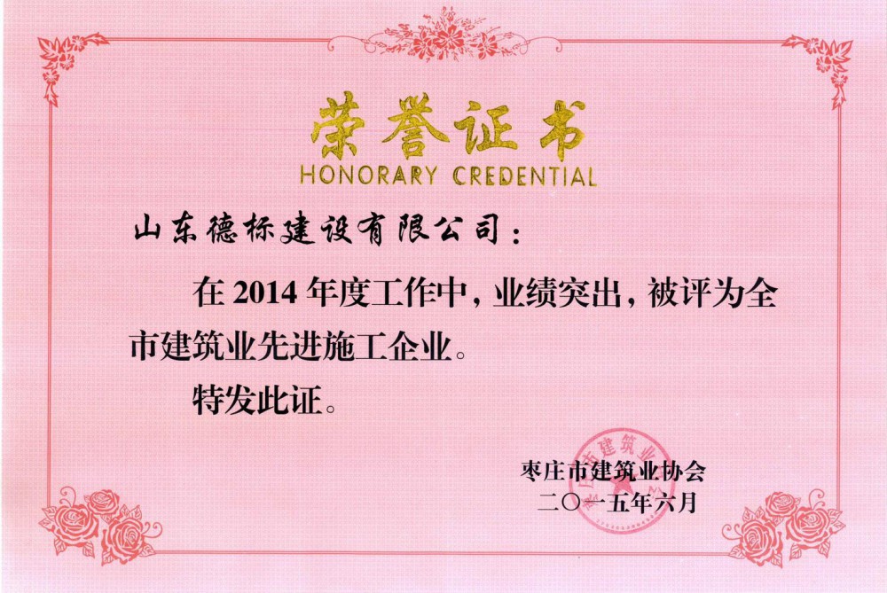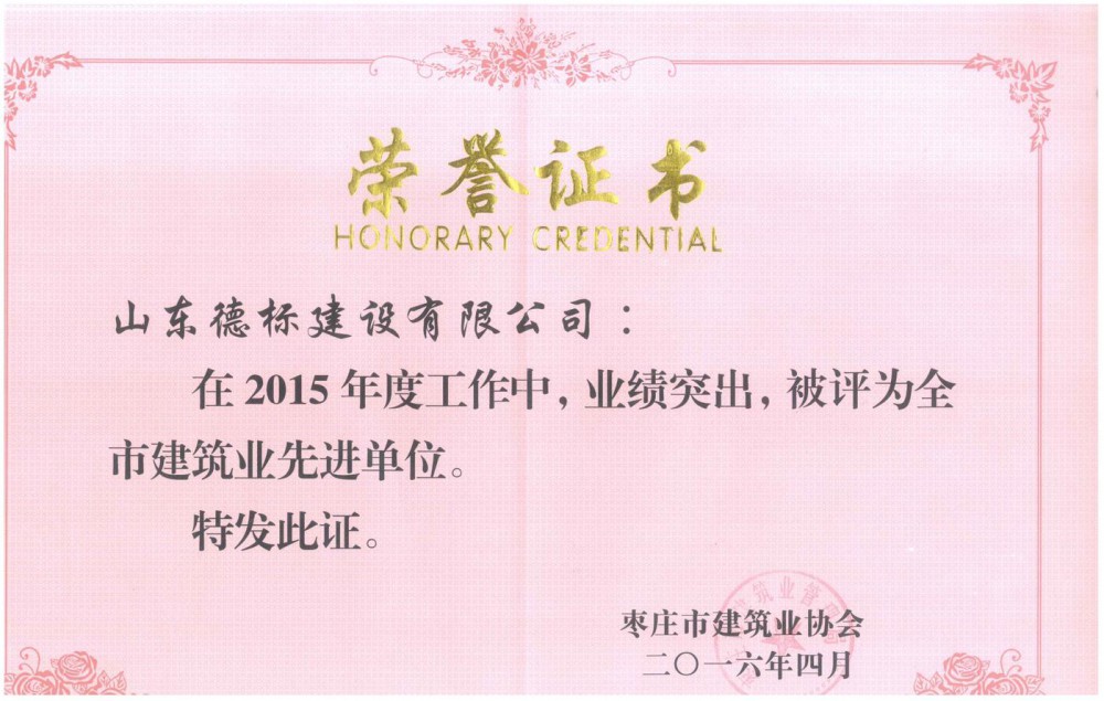 2015年度市建筑業(yè)先進企業(yè)